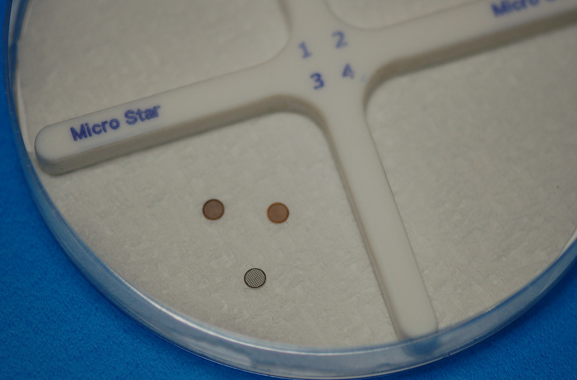 ※キムワイプ(R)を分割キットの下に敷くとグリッド がピンセットで挟み易くなります。